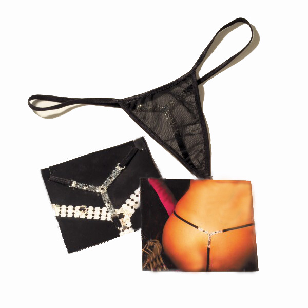 Lovely PU G-String panty with T back rhinestones has t-back style with black jewel accents for a kind of g-string.Additional Information